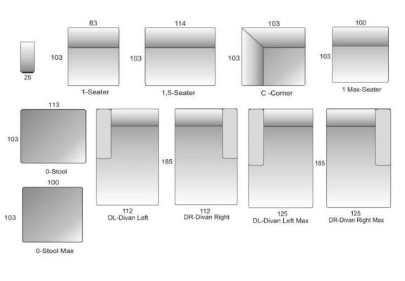 Moduulisohva, voit itse muokata sohvan haluttuun kokoon.