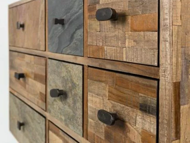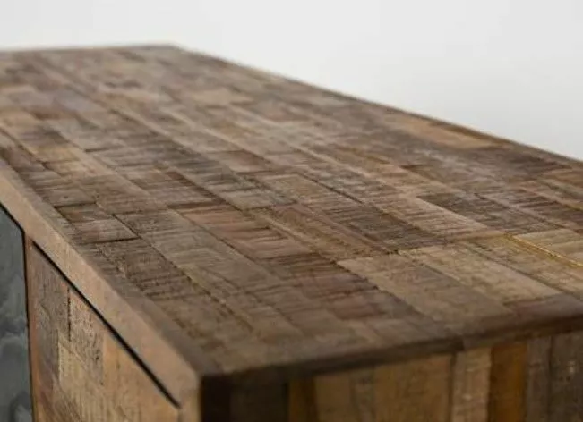 Materiaali: Kierrätetty tiikkikaappi, jossa tiikki viilutettu reuna,