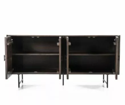 Samaan sarjaan kaappi ja tv-taso, 2:ssa värissä, ruskea ja musta.